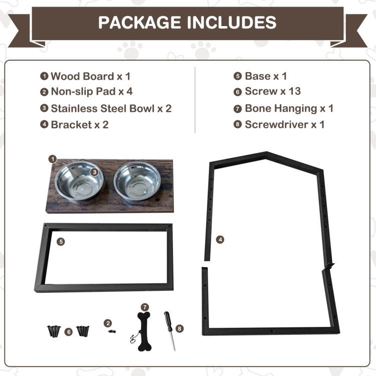 3.Free DIY Bone Card: This elevated pet feeder comes with a bone shaped hang card that serves as a lovely toy to attract your pet's attention. At the same time, you can write your pet's name, paste your pet's photo on it, or DIY it in your desired ways to make it a meaningful gift for your pets.