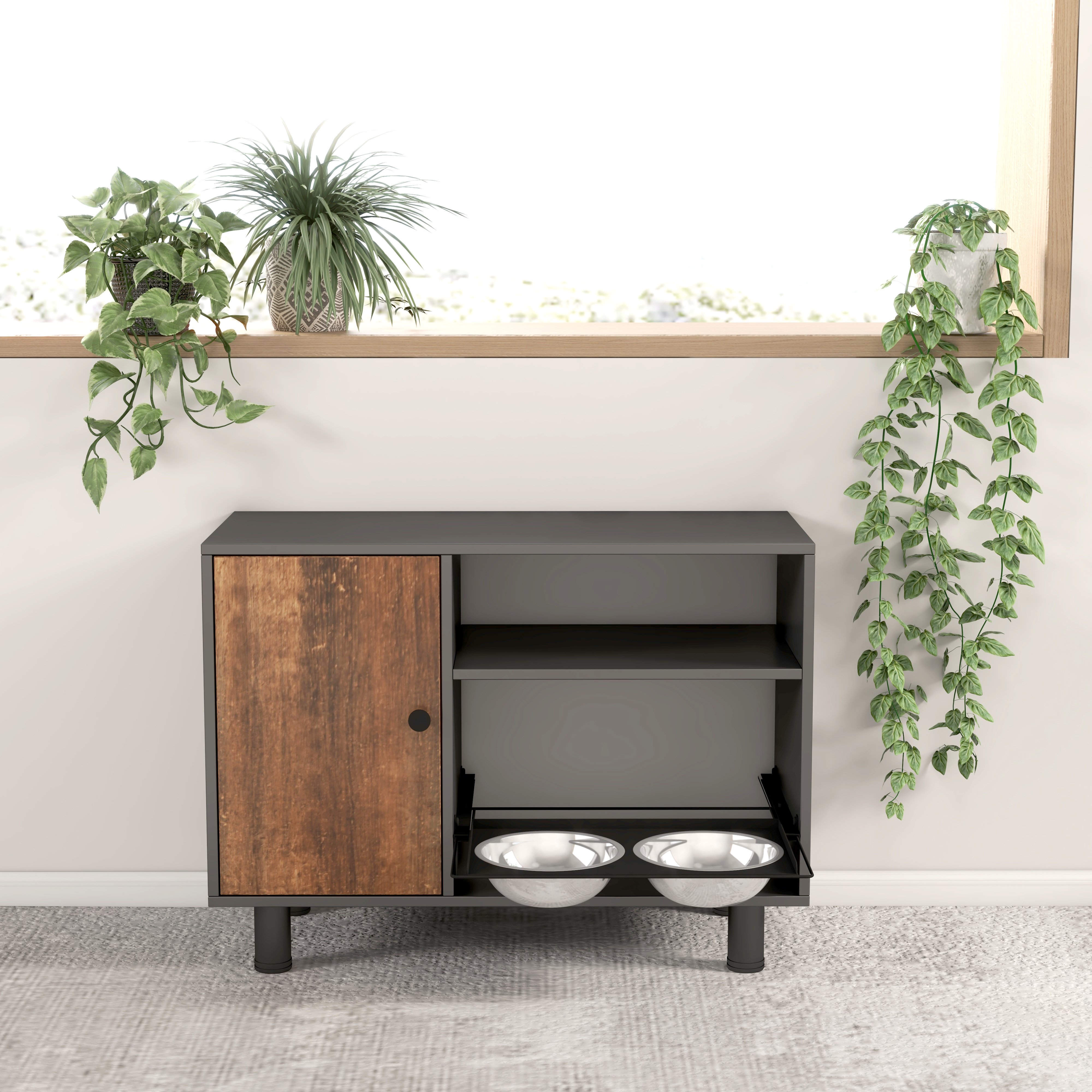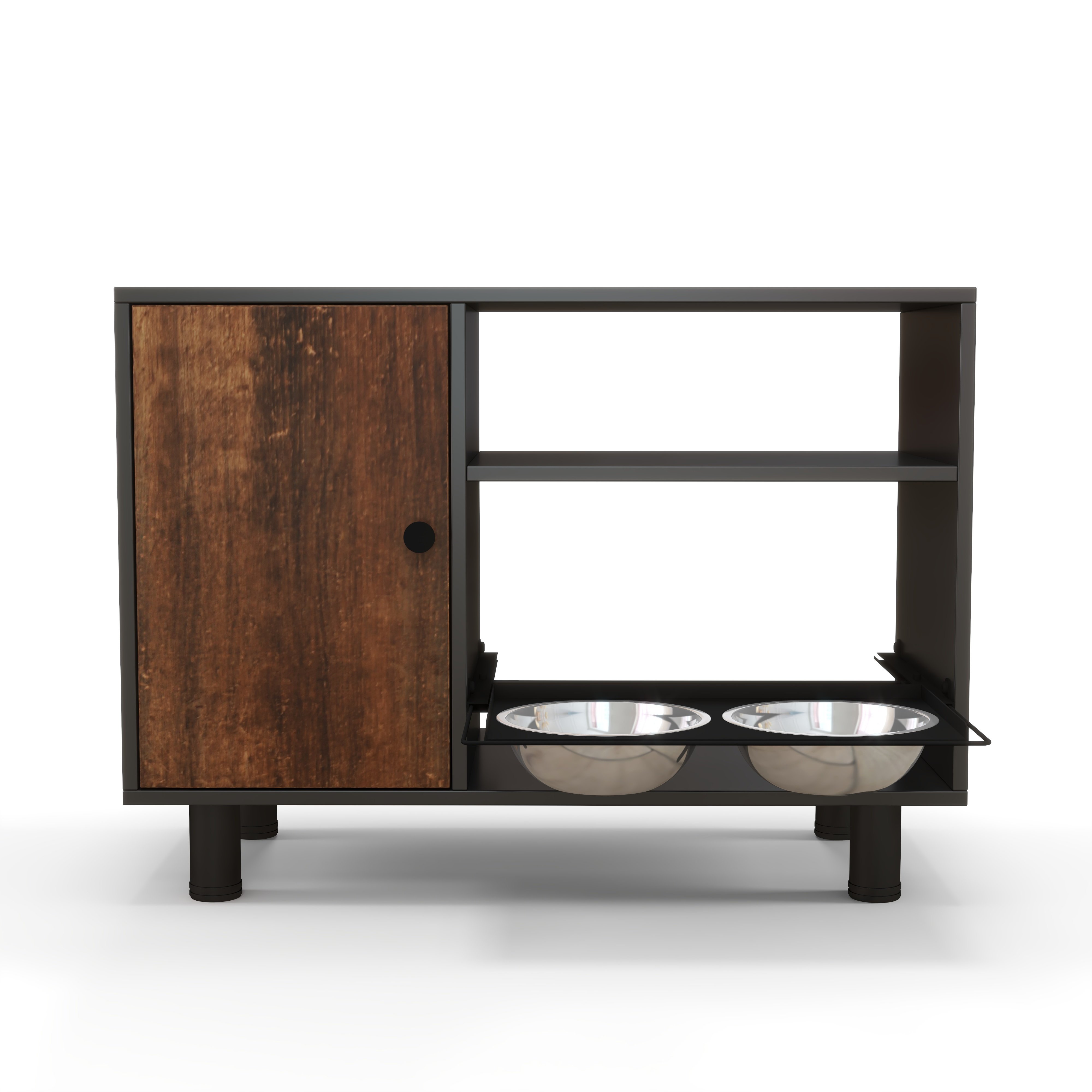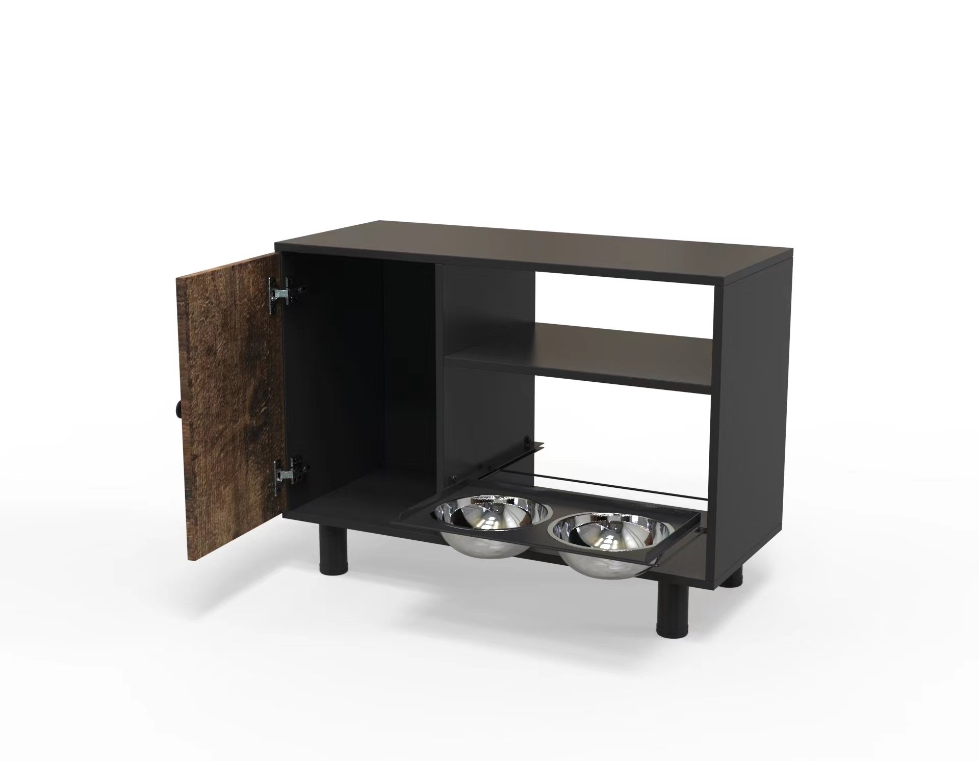Versatile and easy to assemble, stylish and elegant in appearance, safe for petsHigh quality and safety material :2 dog food bowls are made of high quality stainless steel, durable, rust-proof, odorless, safe for pets and long service life. Cabinet adopts high quality medium density board, CNC spray paint, scratch resistant, easy to clean. Large locker on the left side for storing dog food, etc. Two stainless steel bowls can be pulled out on the right side, and the height can be adjusted up and down. When the dog eats, it can be pulled out and used, and it can be stored without taking up space when it is not used. Two different heights can be installed for different types of dogs. Versatile and easy to assemble: Stylish and elegant in appearance, the practical dog food storage container also fits perfectly into your home decor. Also, thanks to detailed instructions and easy-to-understand illustrations, it is easy and quick to set up.