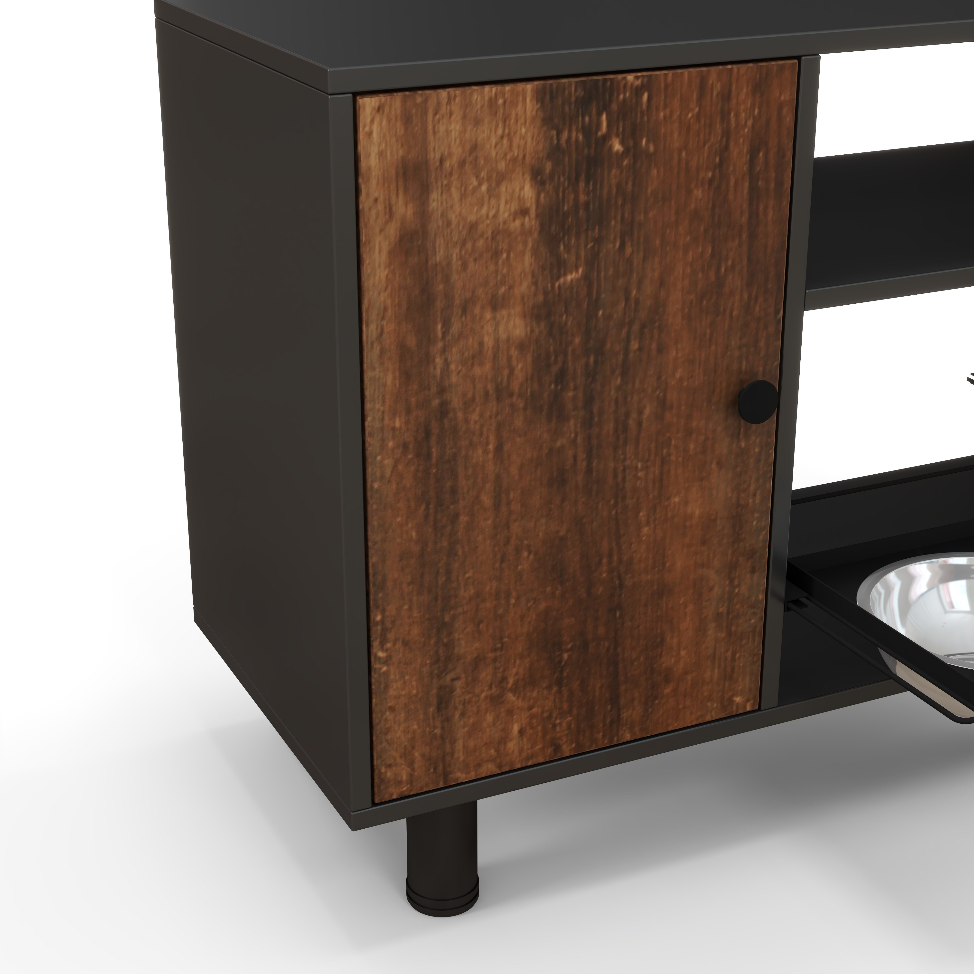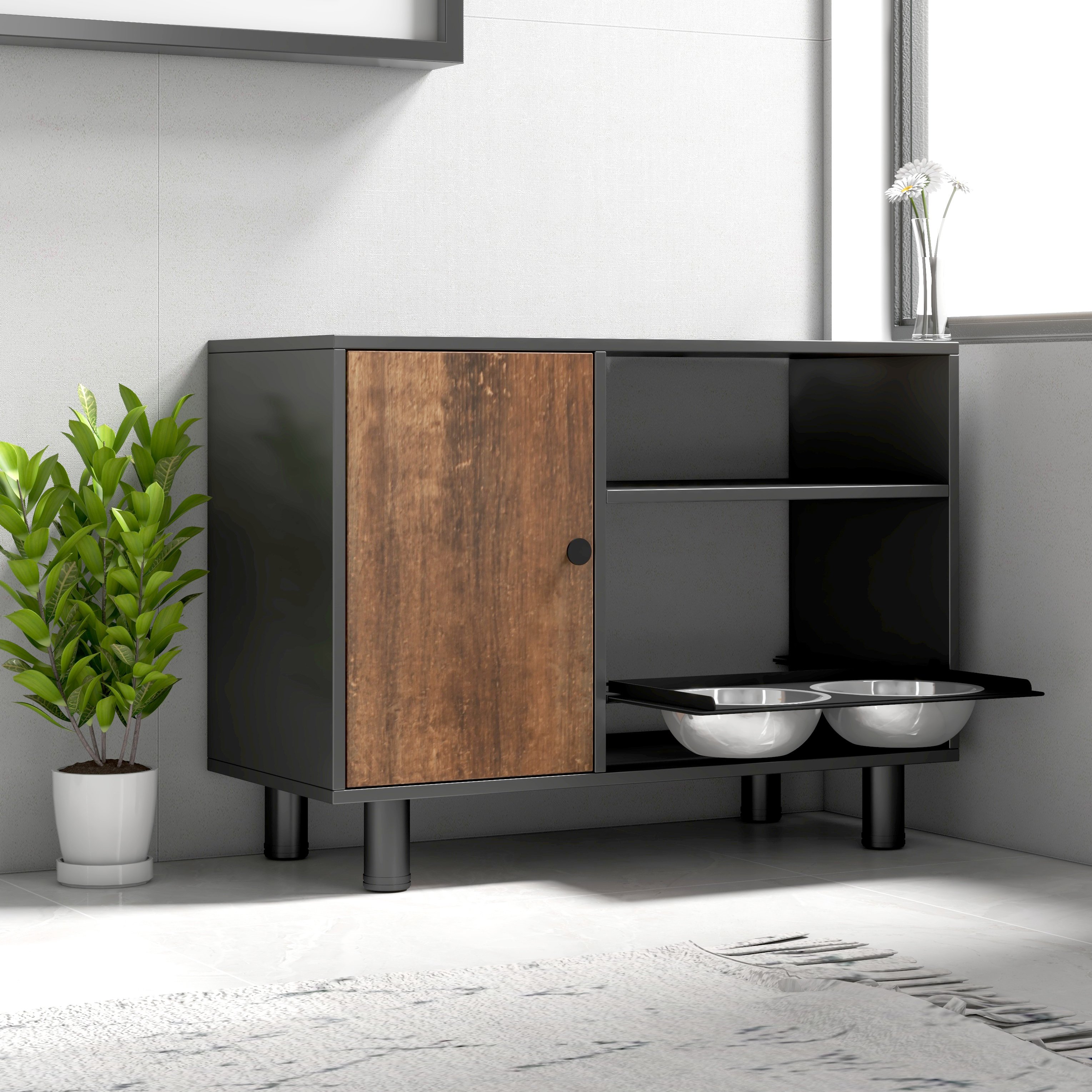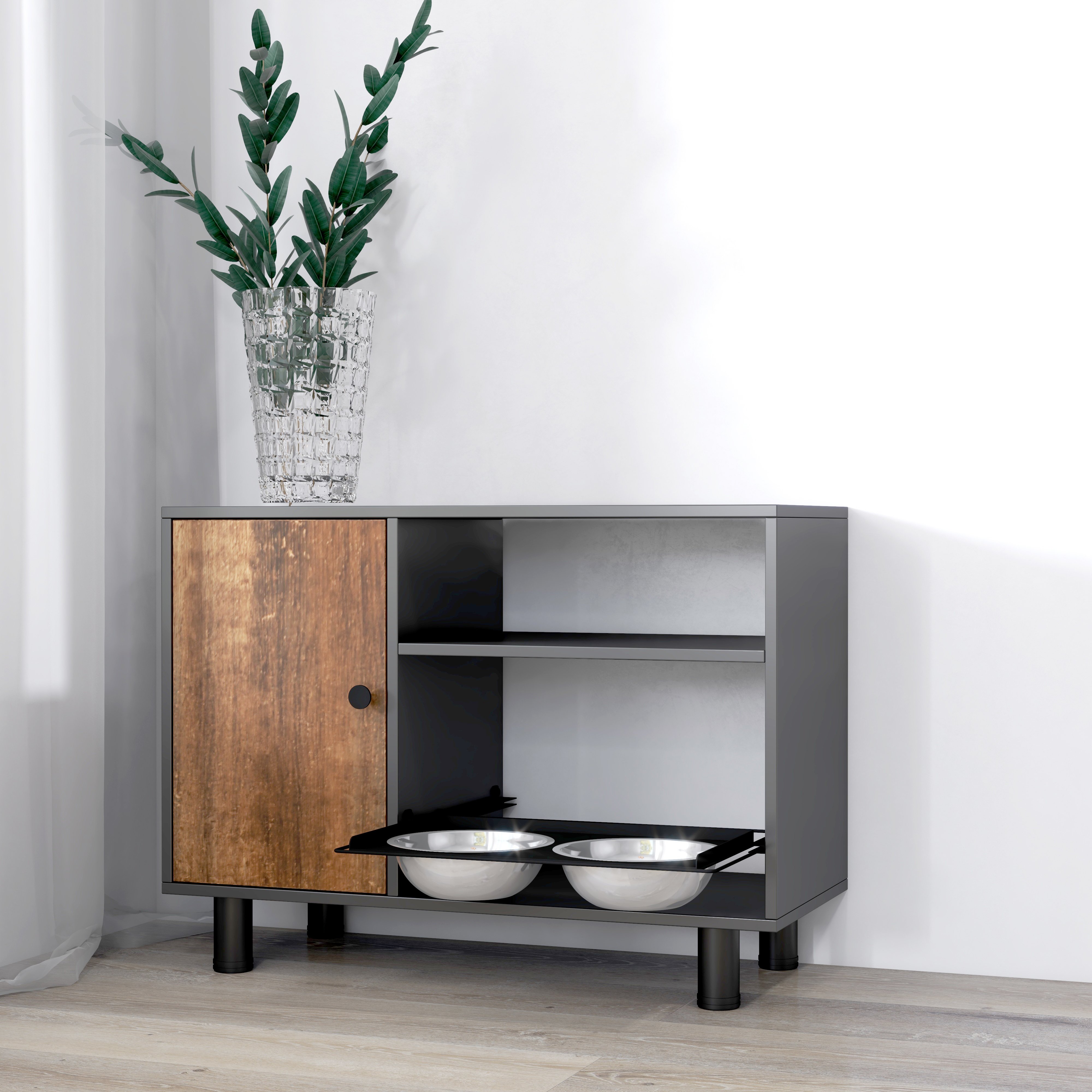 Versatile and easy to assemble, stylish and elegant in appearance, safe for petsHigh quality and safety material :2 dog food bowls are made of high quality stainless steel, durable, rust-proof, odorless, safe for pets and long service life. Cabinet adopts high quality medium density board, CNC spray paint, scratch resistant, easy to clean. Large locker on the left side for storing dog food, etc. Two stainless steel bowls can be pulled out on the right side, and the height can be adjusted up and down. When the dog eats, it can be pulled out and used, and it can be stored without taking up space when it is not used. Two different heights can be installed for different types of dogs. Versatile and easy to assemble: Stylish and elegant in appearance, the practical dog food storage container also fits perfectly into your home decor. Also, thanks to detailed instructions and easy-to-understand illustrations, it is easy and quick to set up.
