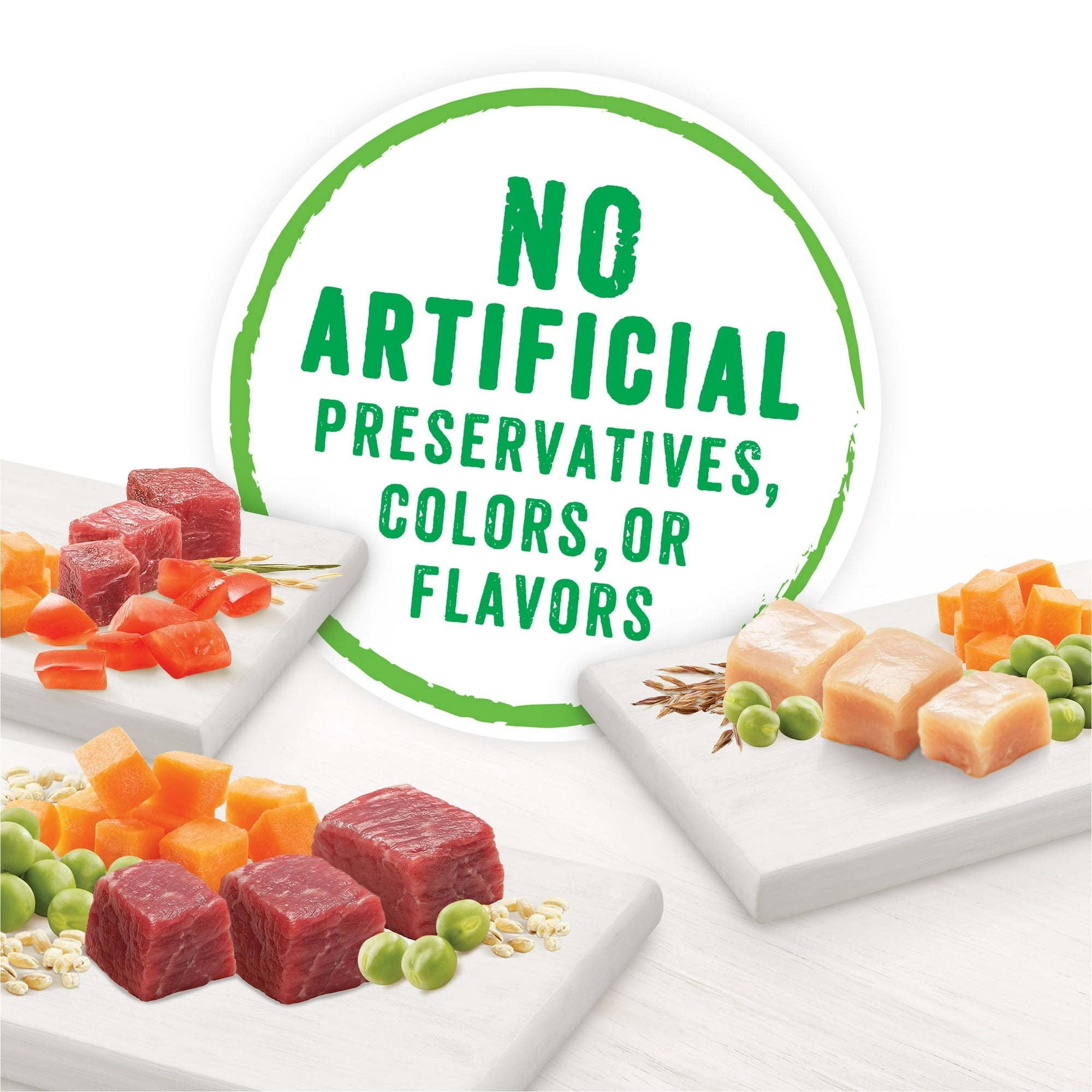Purina Beneful Chopped Blends Wet Dog Food Variety Pack Beef Chicken, Help support your dog's strong muscles with this Purina Beneful Chopped Blends variety pack wet dog food. This premium dog food variety pack features high-quality ingredients, including real chicken, beef or lamb, and no artificial colors, flavors or preservatives. Our high quality Purina dog food recipes also feature wholesome, real ingredients you can see, including vegetables like carrots, peas or tomatoes, along with whole grains like barley and rice. A savory sauce tops the canned dog food off, and a reclosable container makes it easy to save leftovers for later. These adult dog food recipes include 23 essential vitamins and minerals to support your dog's whole-body health.