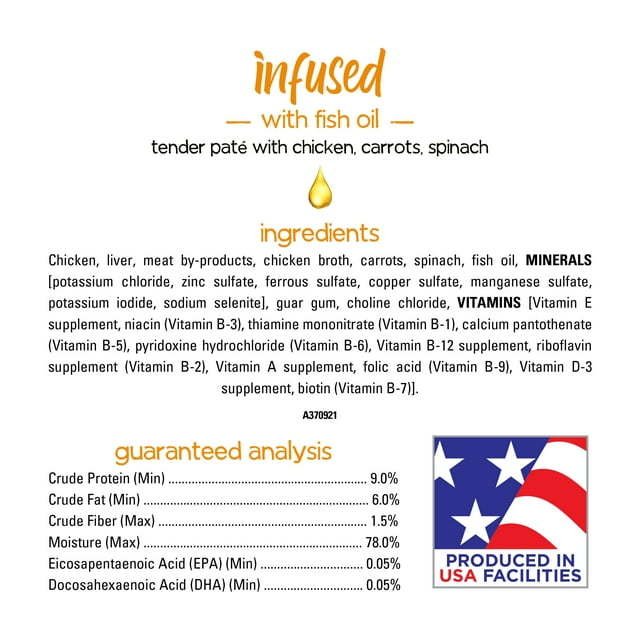 Purina Beneful Real Lamb & Chicken Pate Wet Dog Food Variety Pack, It's easy to cater to his love of flavorful variety when you rotate these Purina adult dog food pate entrees and fill his bowl with great taste and 100 percent nutrition. Three Purina high protein dog food selections made with real beef, lamb or chicken and a blend of real, visible carrots and spinach provide him with wholesome meals packed with great taste. The Real Chicken, Carrots and Spinach recipe is infused with fish oil for dogs to help support a healthy immune system.