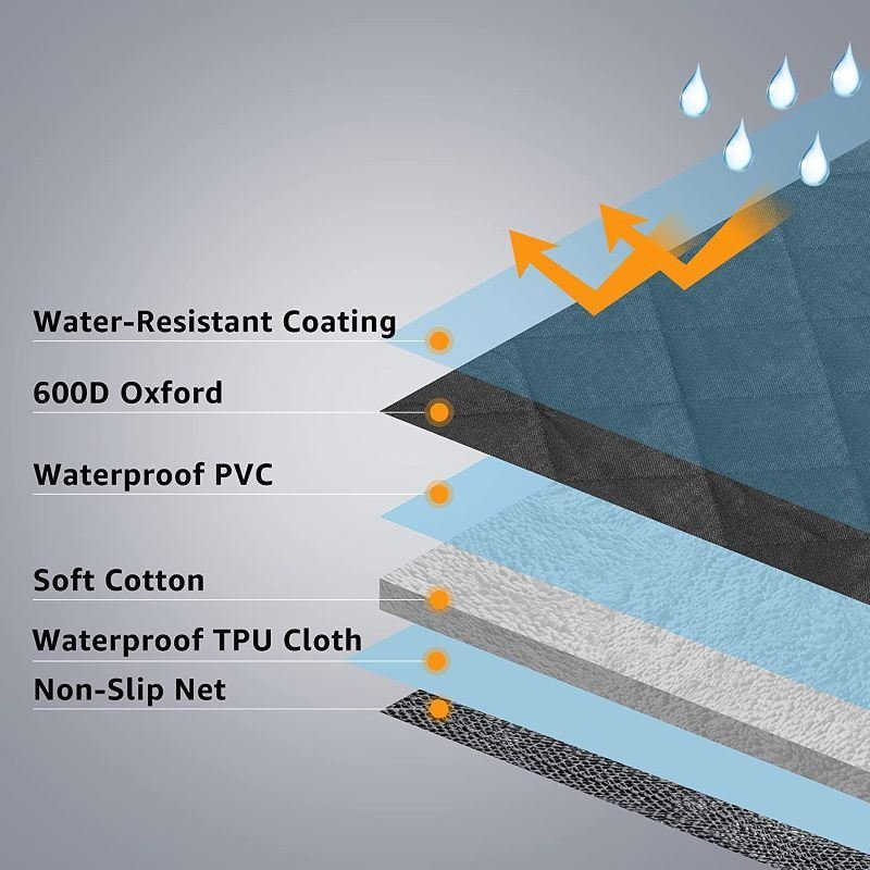 3.Oxford fabric with water-resistant coating can protect your seat from wet paws. The side flaps ensure you don’t damage your seats or car doors while loading your pet in